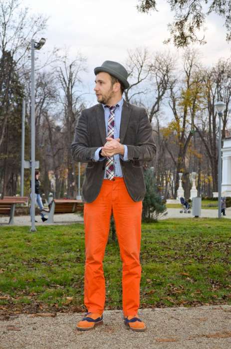 Consider că am purtat ceva foarte simplu, care poate fi uşor adaptat de către oricine. Să zicem că nu-ţi place nuanţa pantalonilor nu te opreşte nimeni să-i schimbi cu o pereche de pantaloni verzi, khaki, bleumarin, etc.