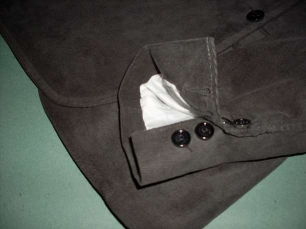 –sacou gri din catifea raiată (ATENŢIE! Nasturii de la manşetă sunt funcţionabili);
