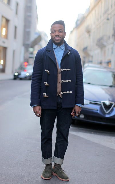 Șosetele lui sunt frumoase, deși se pare că nu sunt întinse. Și îmi place faptul că poartă inelele, chiar dacă unii o să aibă părerea că sunt cam multe. Și duffle-ul e pardesiul meu preferat.