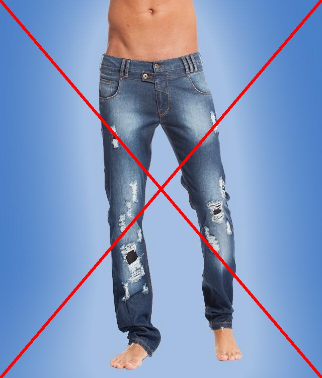 Blugii – evită blugii decoloraţi şi rupţi sau cu multe buzunare, fermoare, embleme. În schimb alege o pereche simplă de nuanţă închisă.