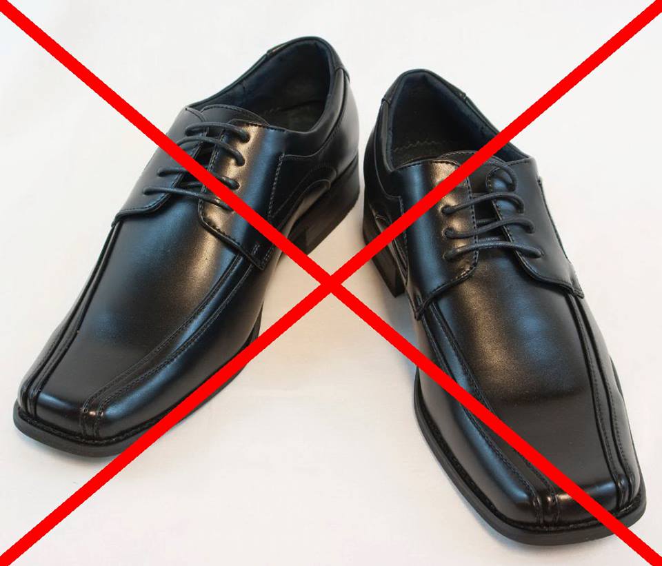 Încălţămintea – evită încălţările fistichii din materiale lucioase cu tot felul de scrisuri şi embleme care le fac extreme de urâte, mai ales modelele cu bot ascuţit sau pătrat. În schimb alege un model clasic din piele de calitate, cu bot rotunjit.
